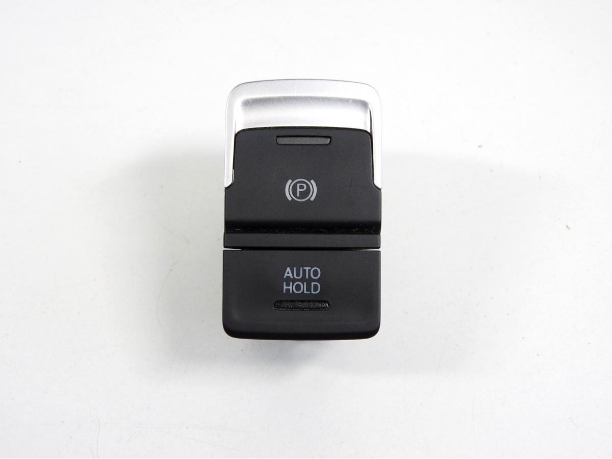 Spínač - tlačítko elektromechanické parkovací brzdy, použitý díl, pro vozy Volkswagen.