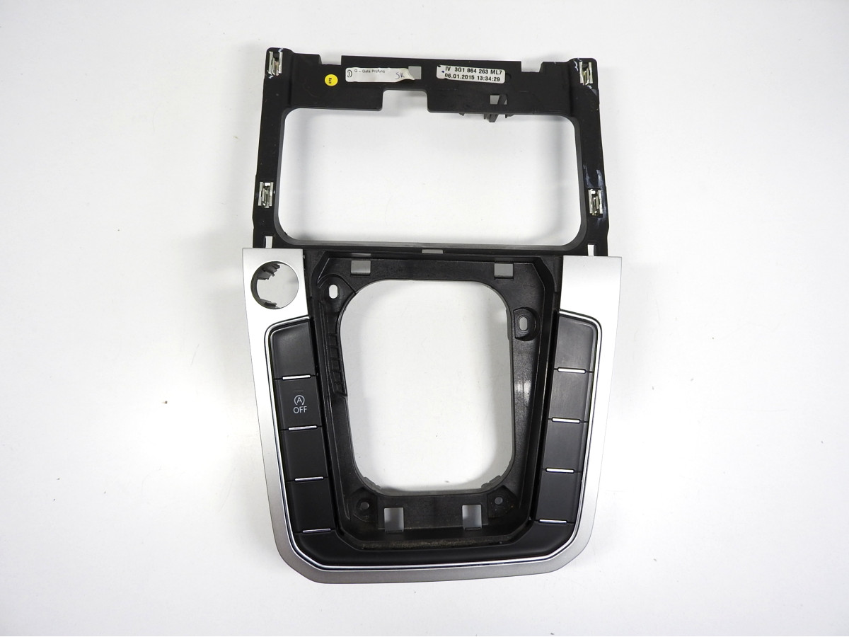 Rámeček řadící páky, použitý díl, pro vozy Volkswagen Passat B8.Číslo dílu: 3G1 864 263 3G1 864 252..