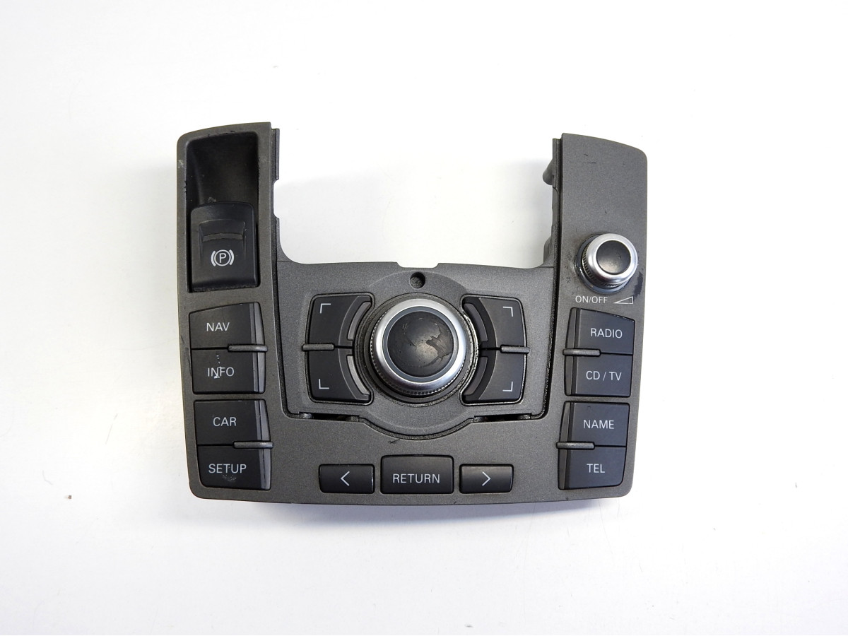 Panel tlačítek pro vozy Audi A6. Stav viz foto, na náhradní díly. Číslo dílu: 4F1 919 610 T..