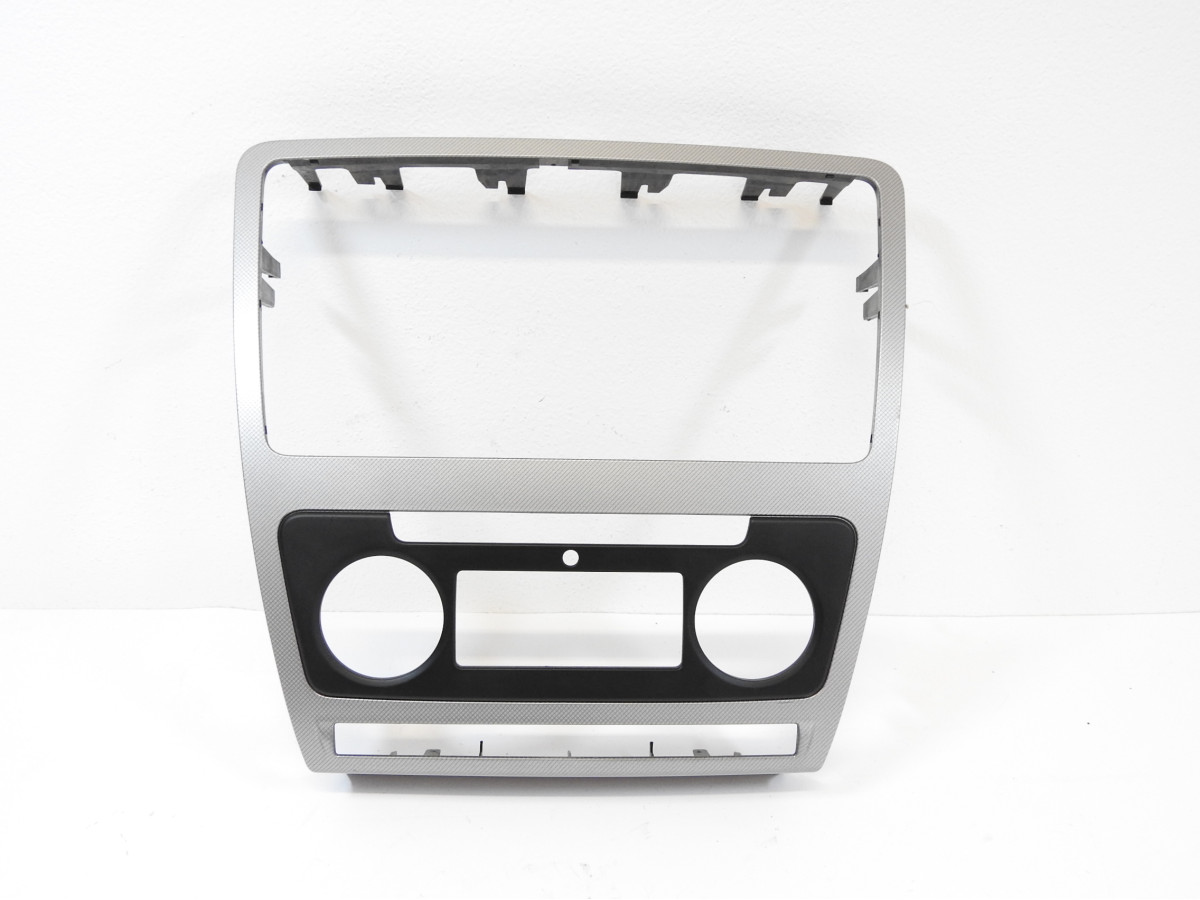 Rámeček rádia a ovládání klimatizace, krytka spínače topení, použitý díl, pro vozy Škoda Octavia II lift 2009-2013.