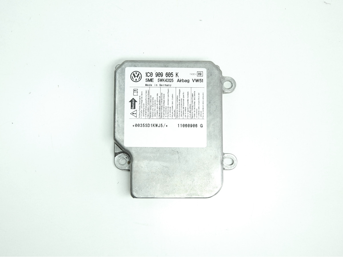 Řídící jednotka airbagu dle označení.Číslo dílu: 1C0 909 605 AINDEX10 VW51 5WK43122UPOZORNĚNÍ: Vážen..
