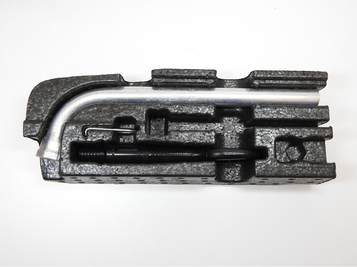 Výplň s klíčem na kola, tažným okem a háčkem na kryty šroubů pro vozy Volkswagen Caddy . Stav viz fo..