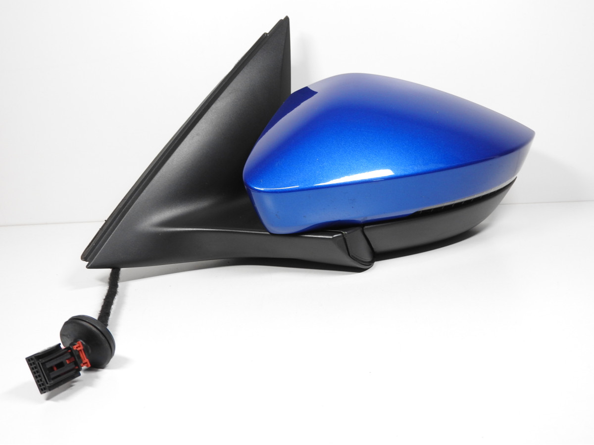 Vnější zpětné zrcátko, levé, se sklem, elektricky ovládané, vyhřívané, s blikačem, sklopné, s automatickým stmíváním (elektrochromatické) Škoda Scala. Stav viz foto.